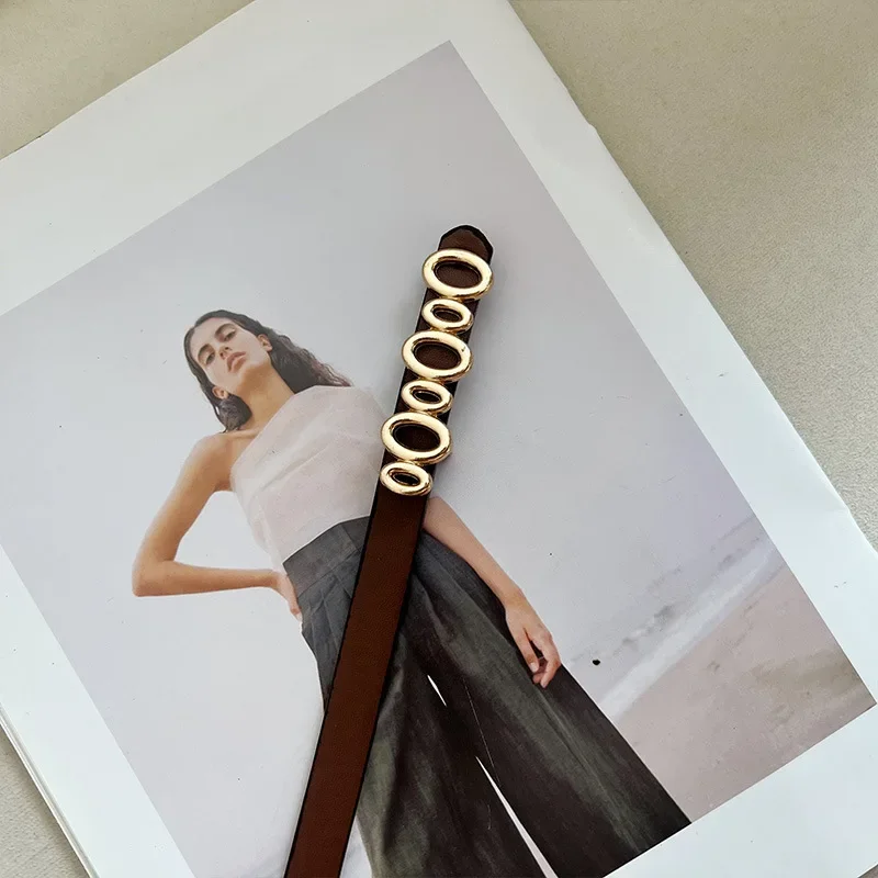 Transforme seu look com o cinto artístico feminino coreano em couro PU. Com design diferenciado e toque moderno, ele adiciona personalidade e charme a qualquer produção.